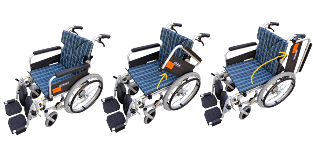 移乗に便利な車いす 2026.01.07 歩行が困難な方の場合、ベッドから車いすへの移乗は頻繁に発生すると思います。 車いすにはアームサポート(ひじ掛け)が可動式になっているものがあります。上半身がある程度使える方ならばベッドからスライドする形で移乗できるので、一旦立ち上がるよりは楽になります。下の写真は当方で所有している車いすの例です。 ご参考まで!